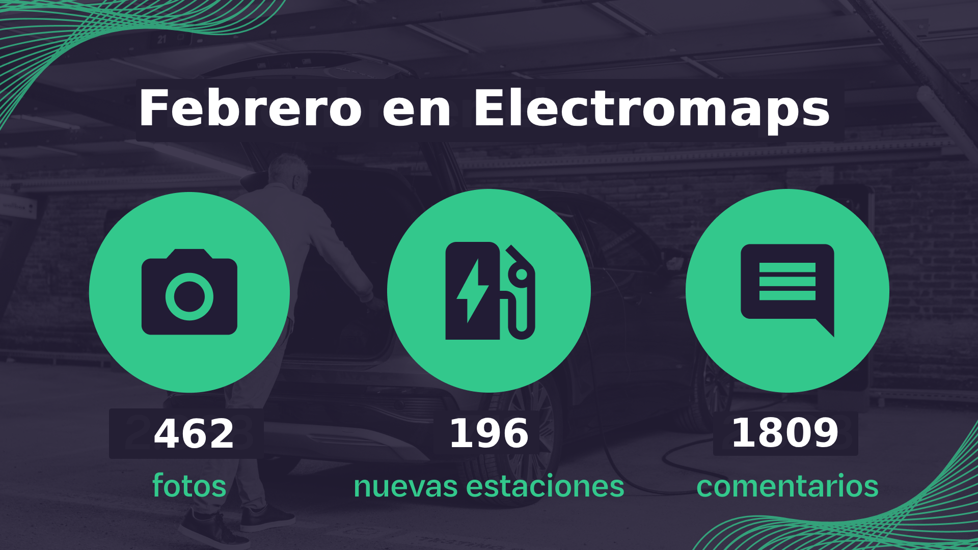 El pasado mes de Febrero, nuestra comunidad de usuarios añadió 196 estaciones al mapa de puntos de carga, 1809 comentarios y 462 fotos.